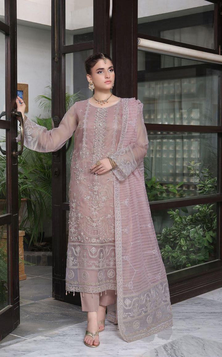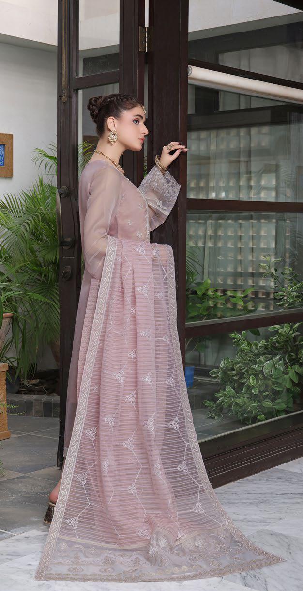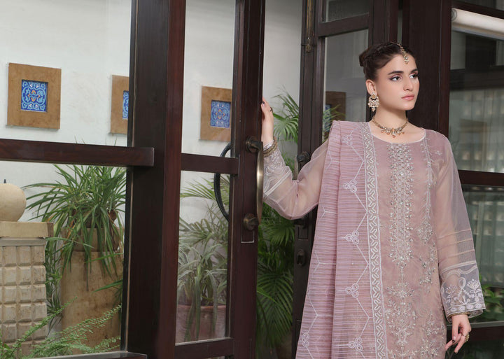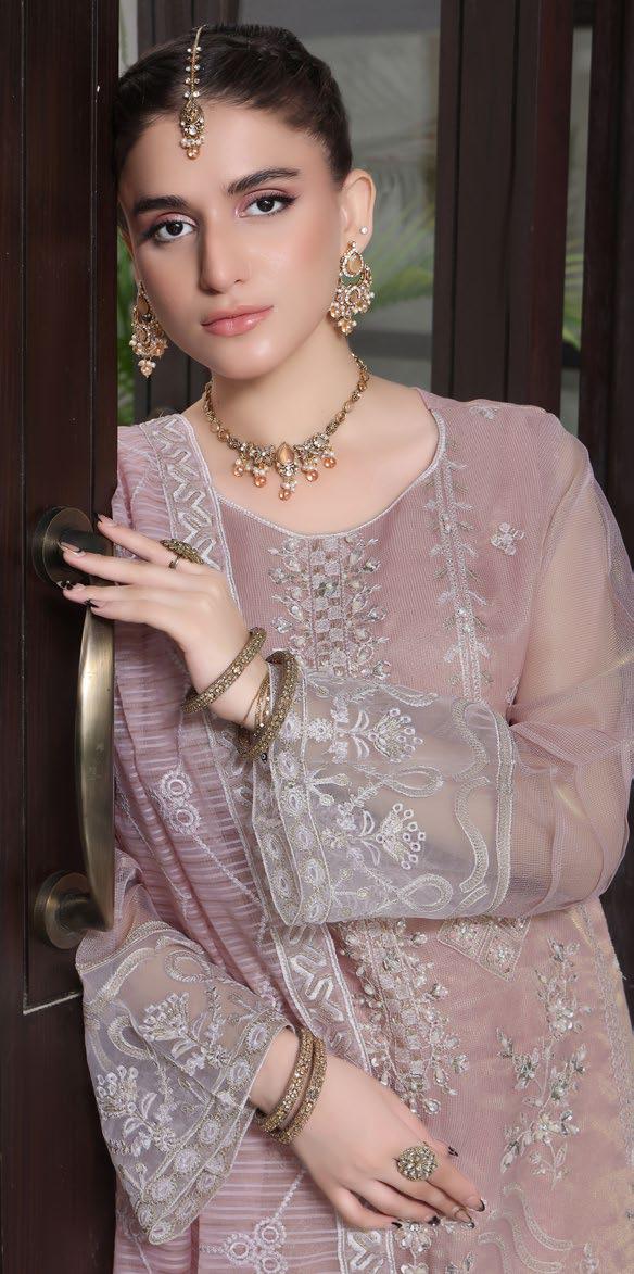 ALV-501 Khaadi Net Embroidered - Unstitched Tea Pink
