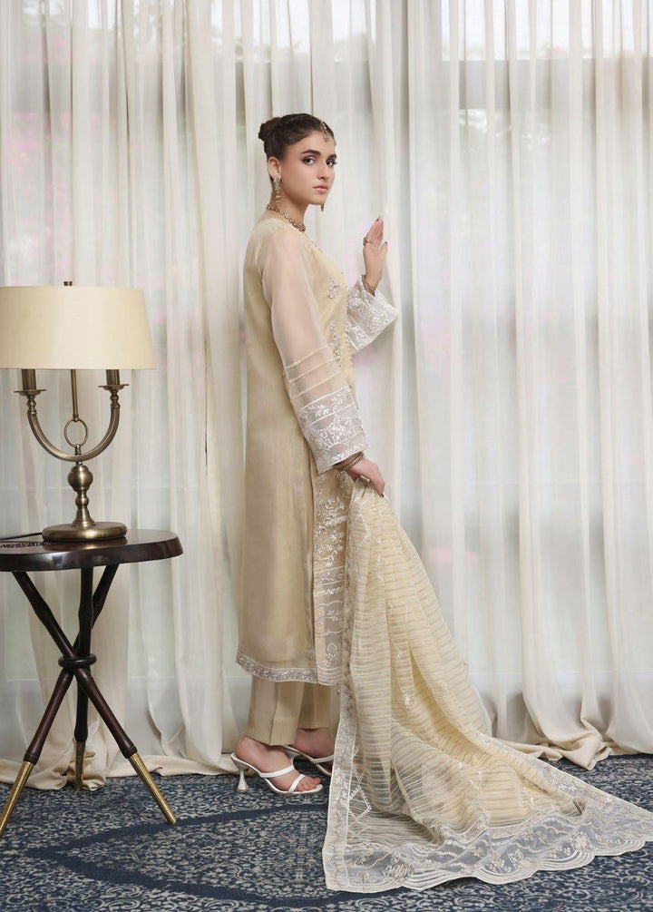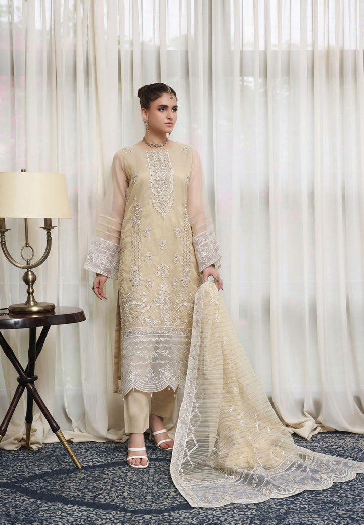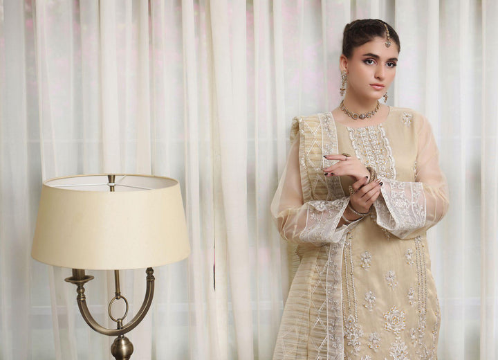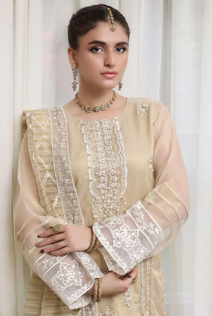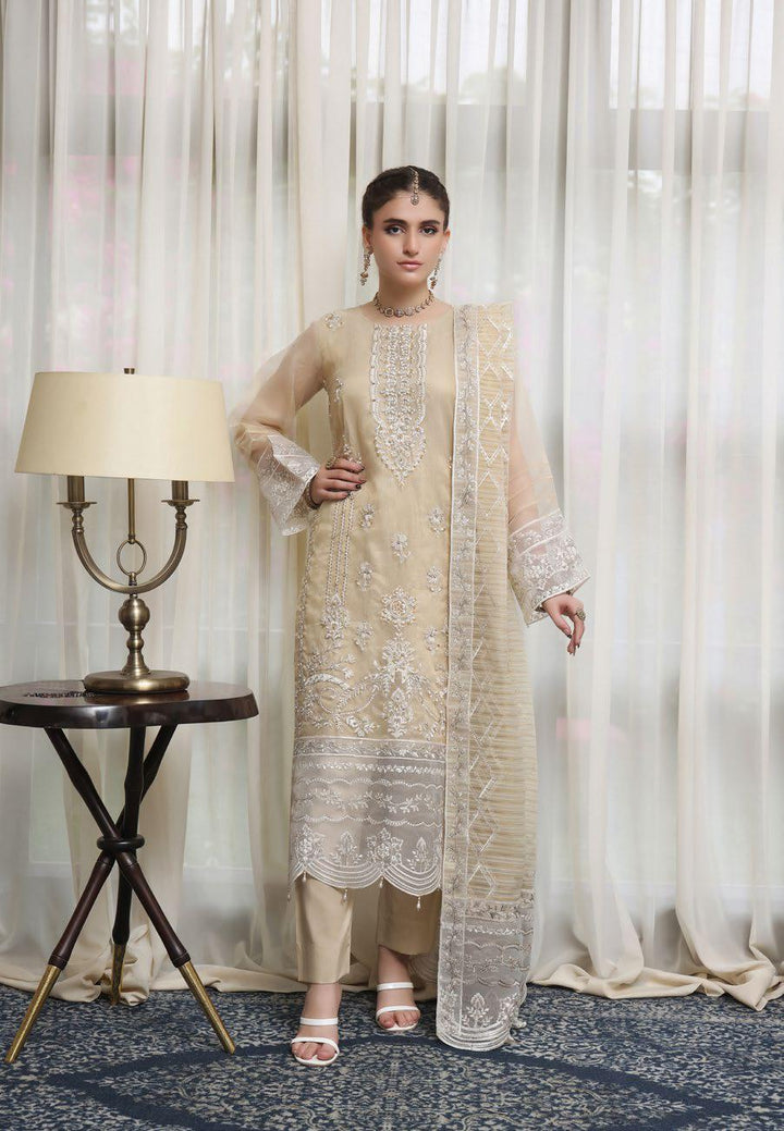 ALV-504 Khaadi Net Embroidered - Unstitched Soft Amber