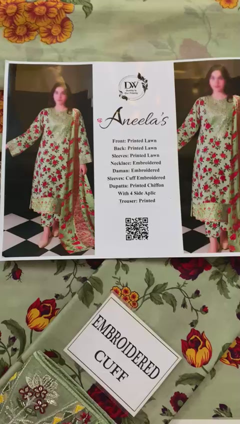 Aneela's luxury lawn Embroidered Unstitched - ANW-876