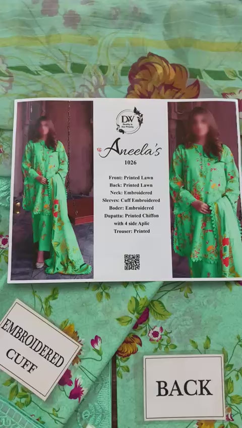Aneela's luxury lawn Embroidered Unstitched - ANW-878