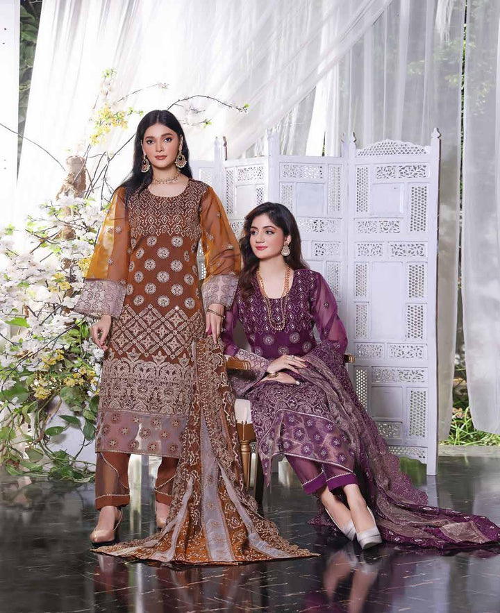- Heavy Embroidered Organza Dupatta with side embroidered Border