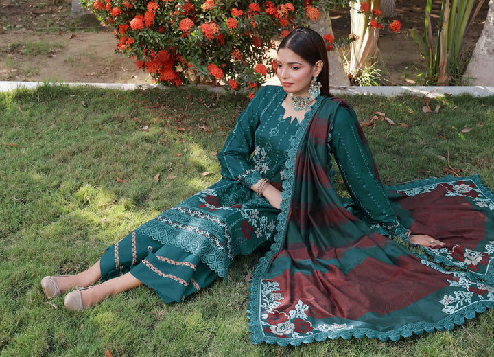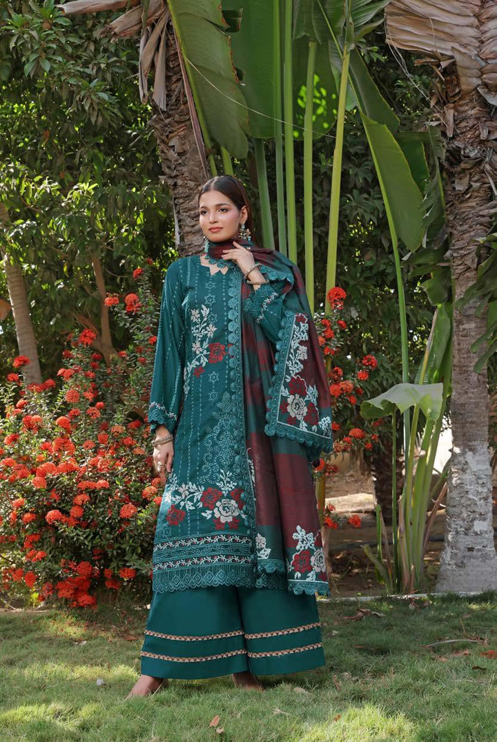 HMS-6104 Premium Chikankari Embroidered Lawn - Unstitched Aqua Green