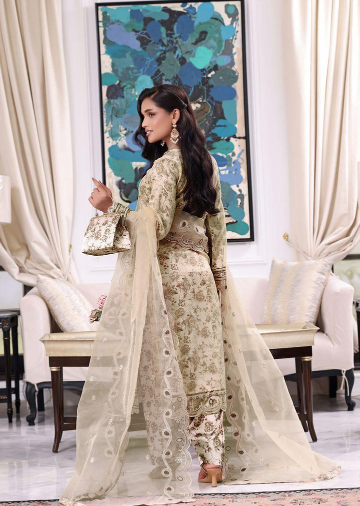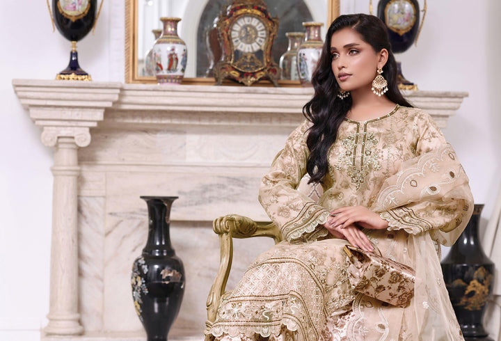 - Luxury Organza Embroidered Sequins & Hand Embellishment With Printed Shawlmose Linen