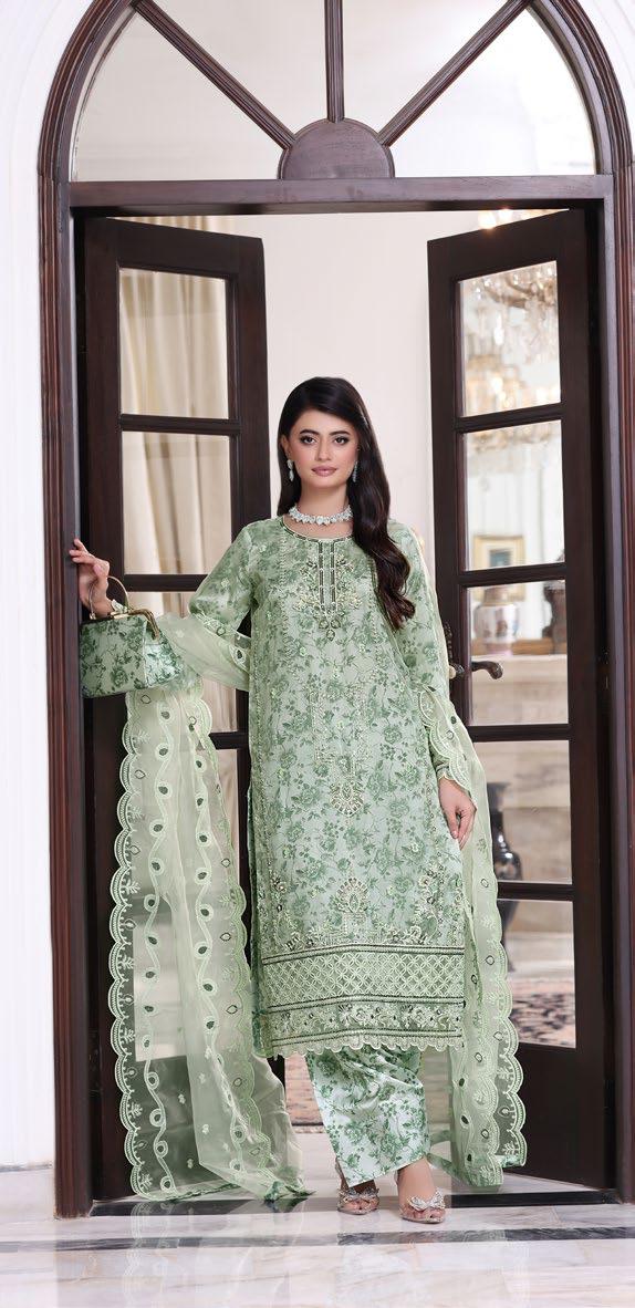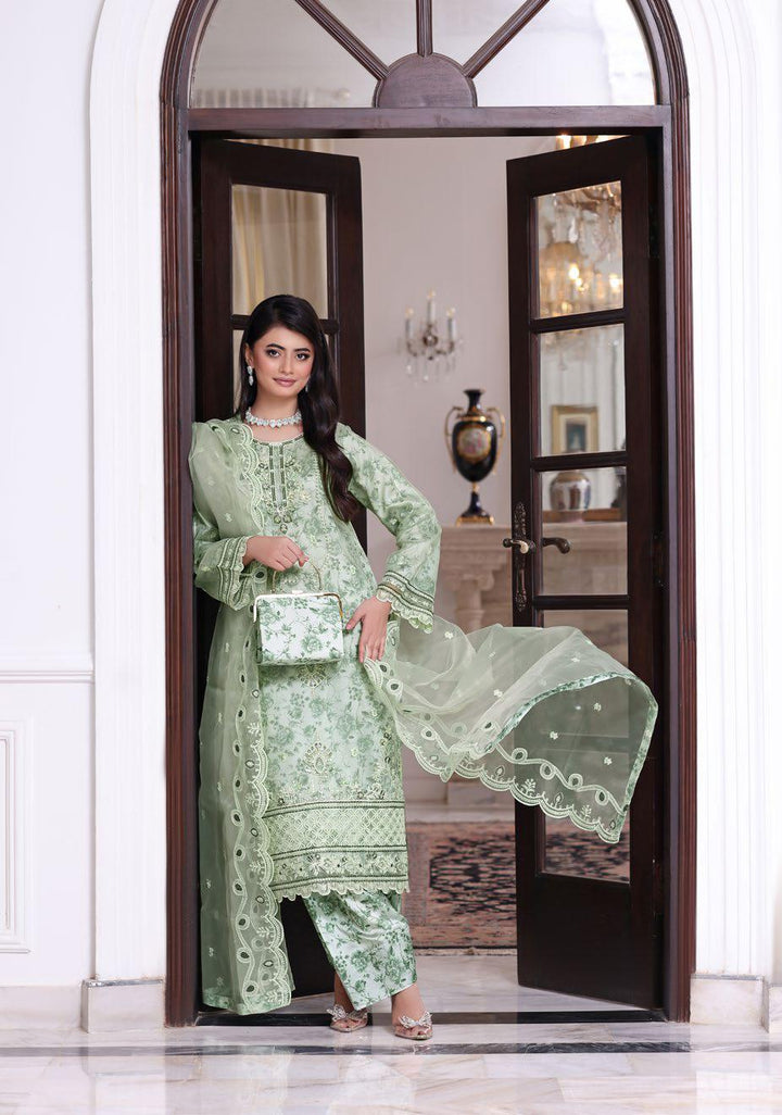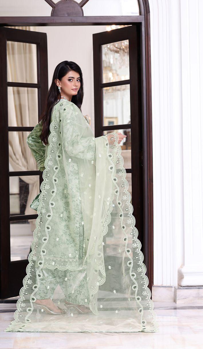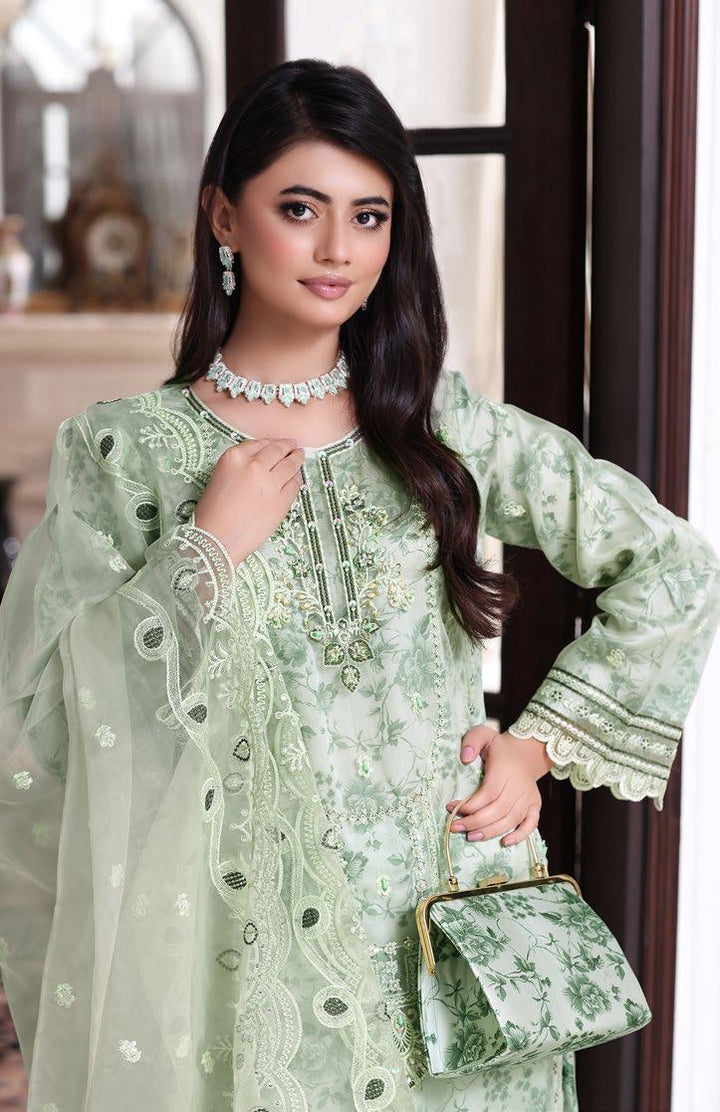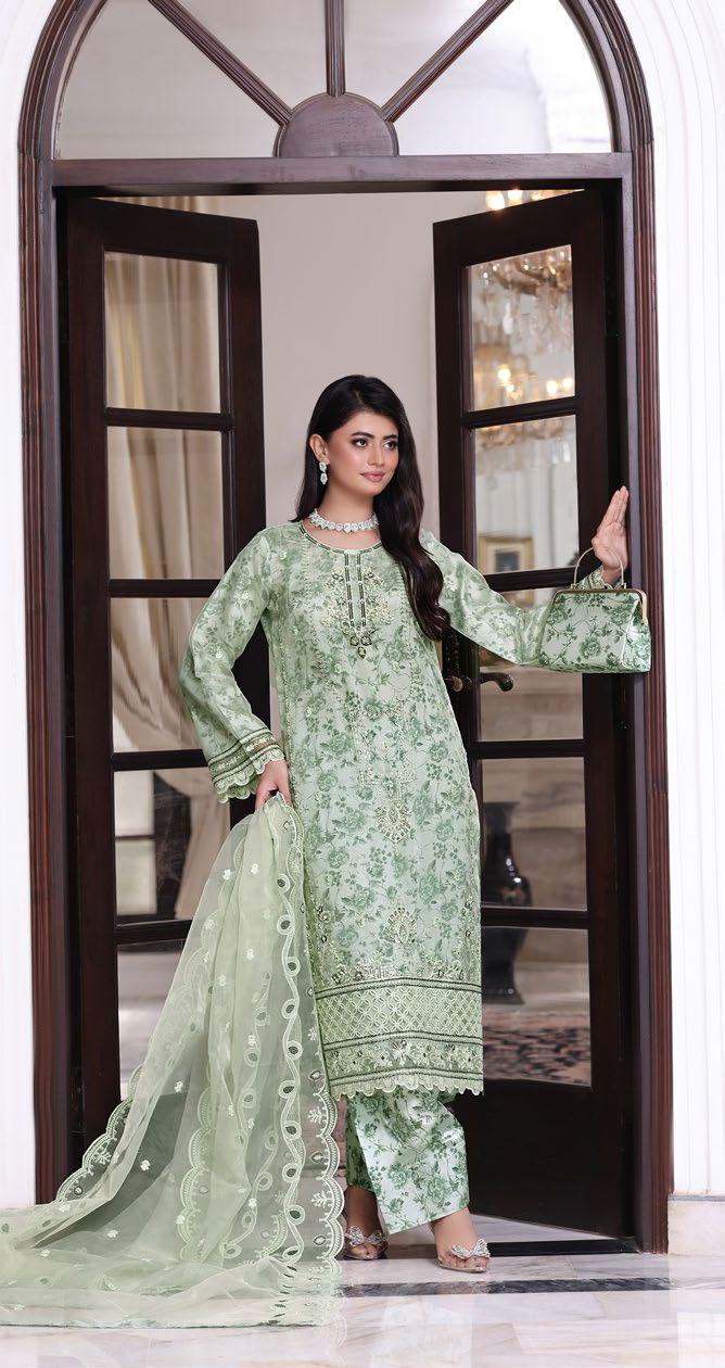 - Luxury Organza Embroidered Sequins & Hand Embellishment With Printed Shawlmose Linen