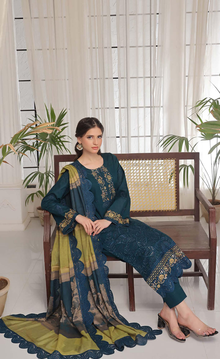 SDMF-6203 Embroidered Lawn - Unstitched Turkish green