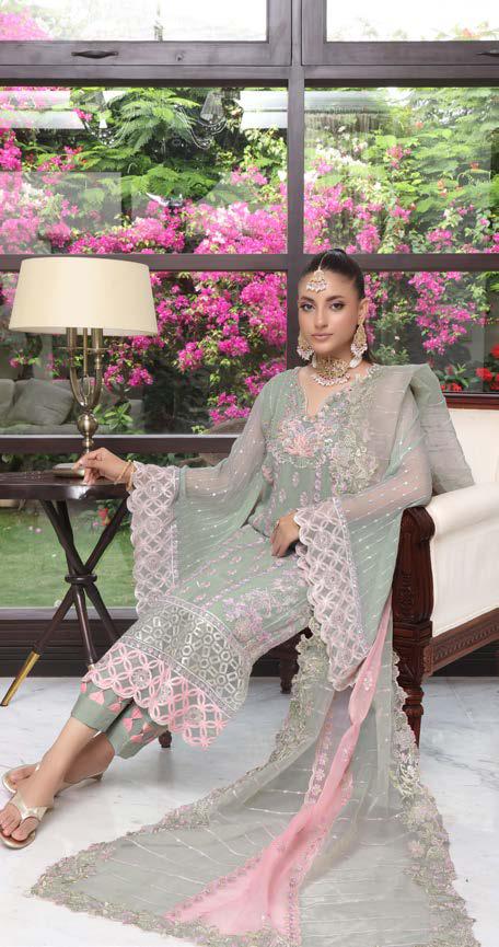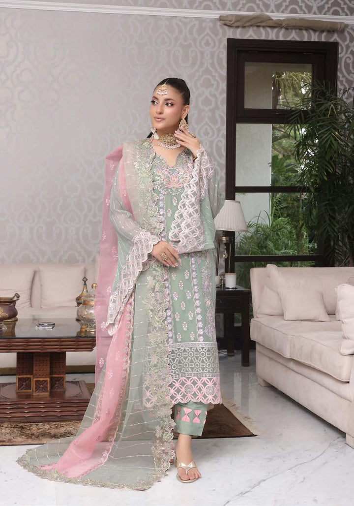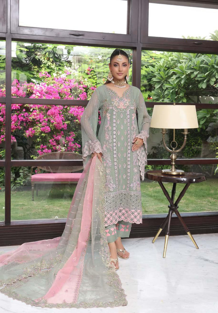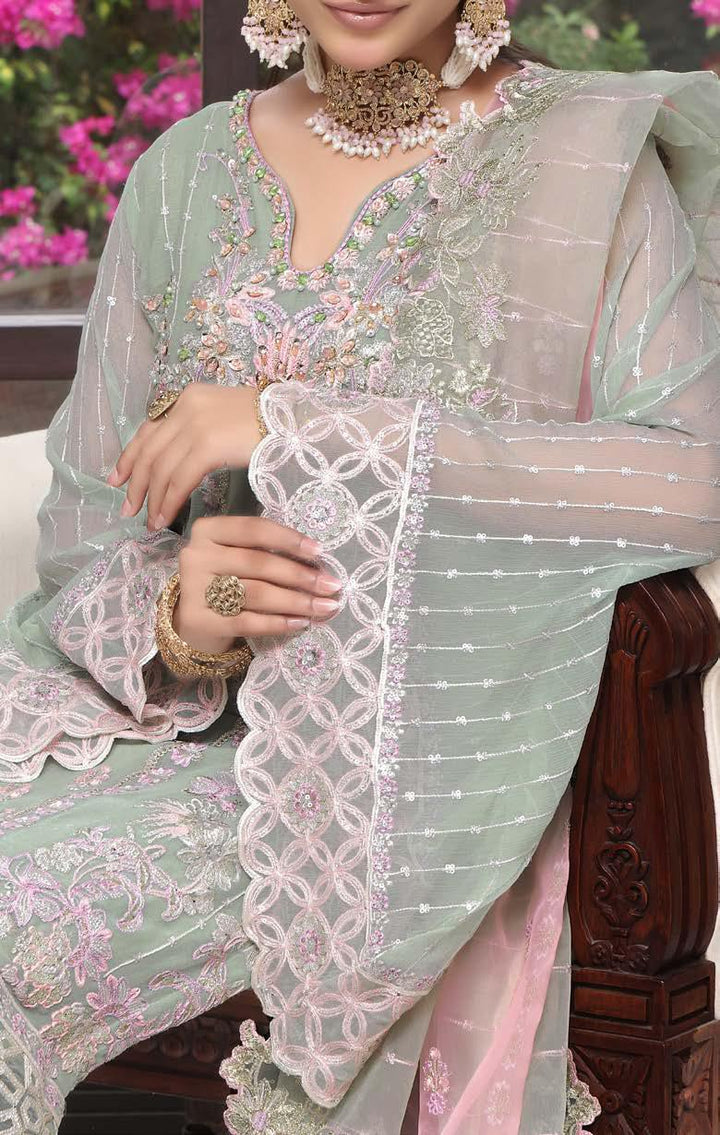 SHN-1004 Luxury Chiffon Embroidered - Unstitched Pista Green
