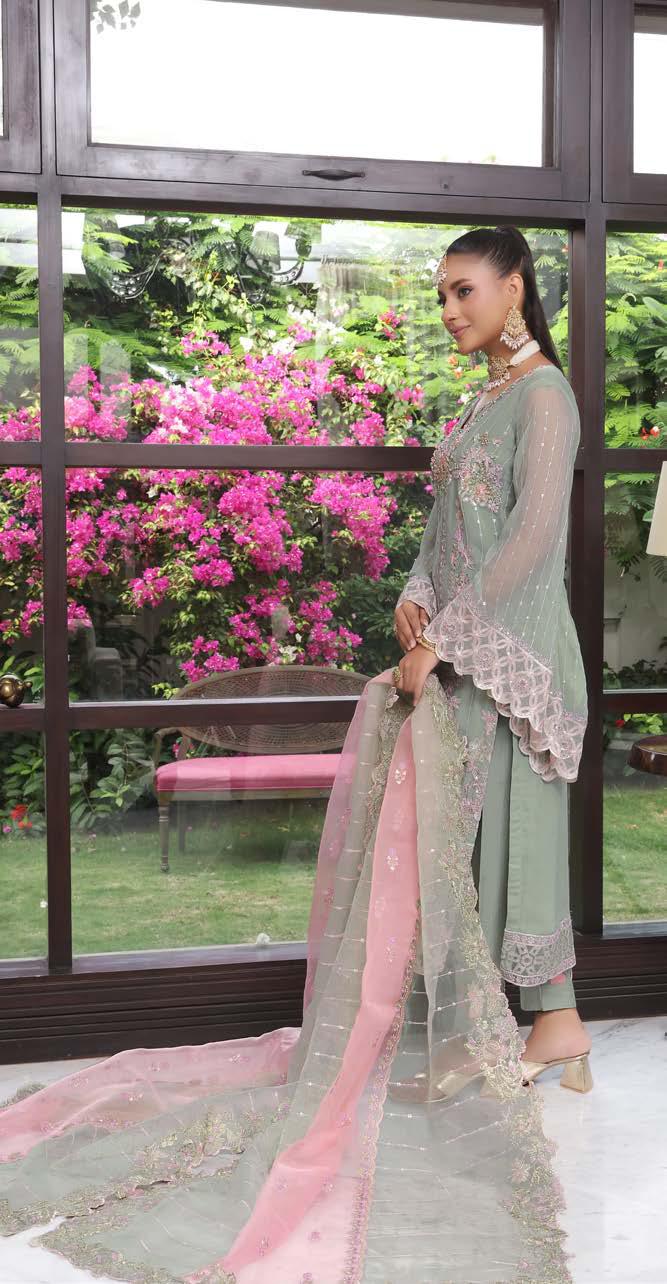 - Luxury Embroidered Chiffon Shirt with hand Embellishment work