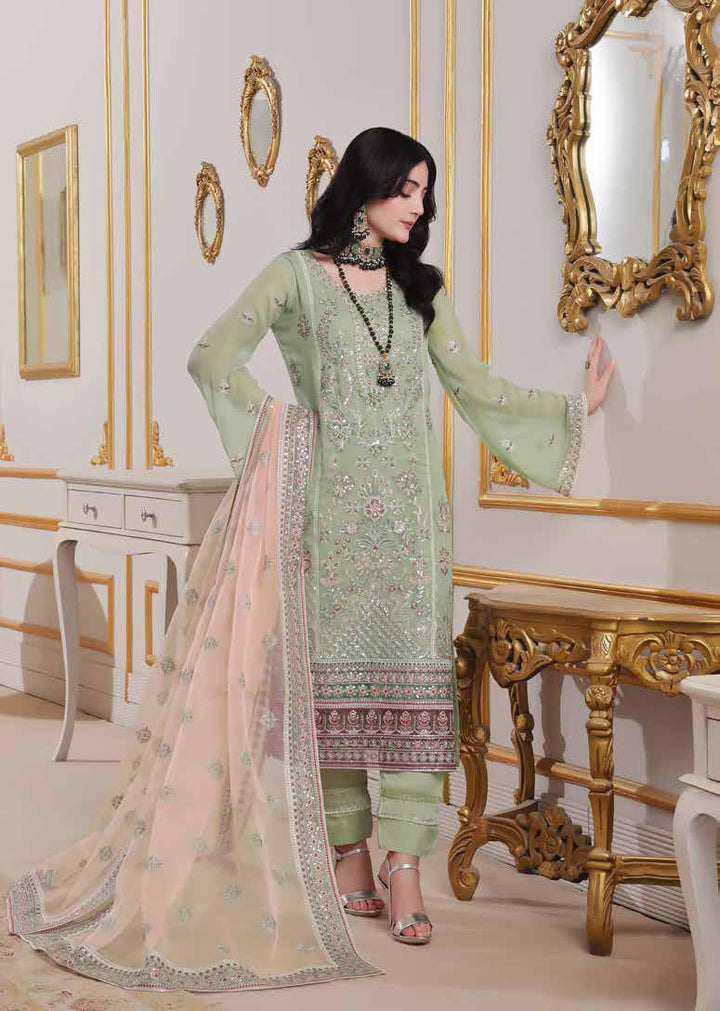 ZE-4004 Luxury Chiffon Embroidered - Unstitched Pistachio
